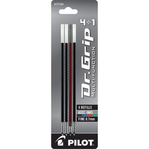 Pilot Dr. Grip 4+1 Multi-Function Ballpoint Ink Refills, Fine Point, Black/Red/Blue/Green Inks, 4-Pack