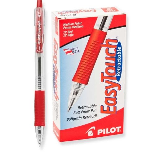 Pilot Easytouch Ballpoint Pen, Retractable, Medium Point, Red Ink, Clear Barrel, Single Pen