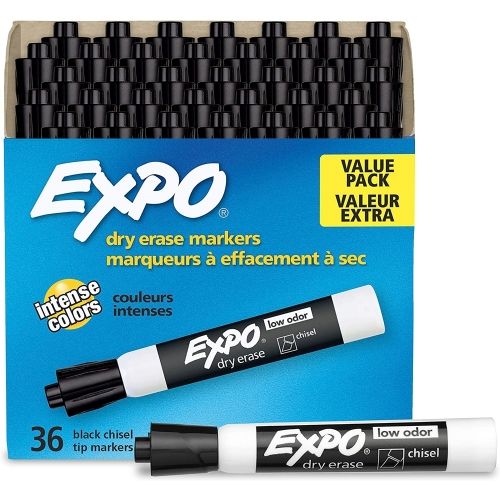 Expo Low-Odor Dry-Erase Marker Value Pack, Broad Chisel Tip, Black, 36/Box 1 Ea