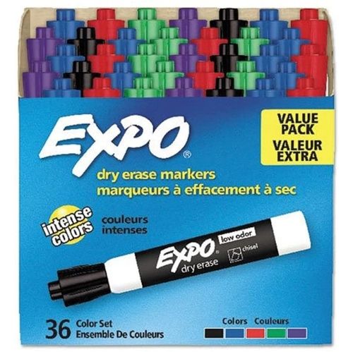Expo Low-Odor Dry-Erase Marker Value Pack, Broad Chisel Tip, Assorted Colors, 36/Box 1 Ea
