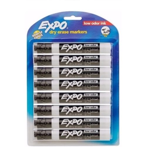 Expo Low-Odor Dry Erase Markers, Chisel Tip, Black, 8-Count