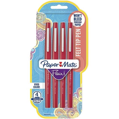 Paper Mate Flair Felt Tip Pens, Medium Point (0.7mm), 4/Pack, Red