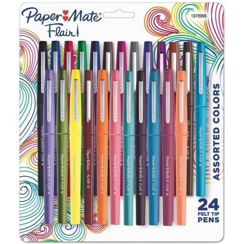 Paper Mate Flair Felt Tip Pens, Medium Point (0.7mm), 24/Pack