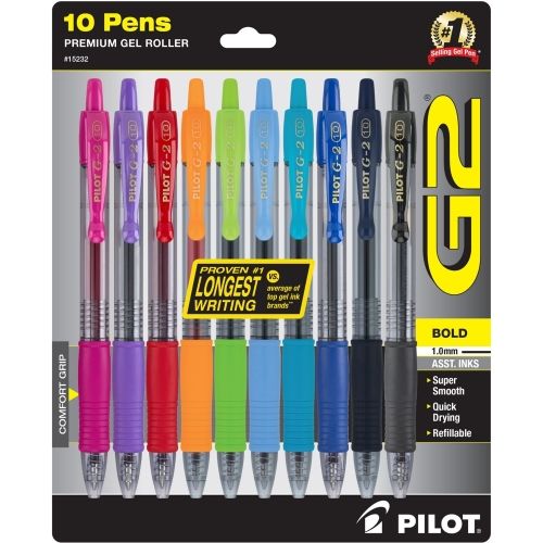Pilot G2 Premium Refillable & Retractable Rolling Ball Gel Pens, Bold Point 1.0 Mm, Assorted, 10/Pack