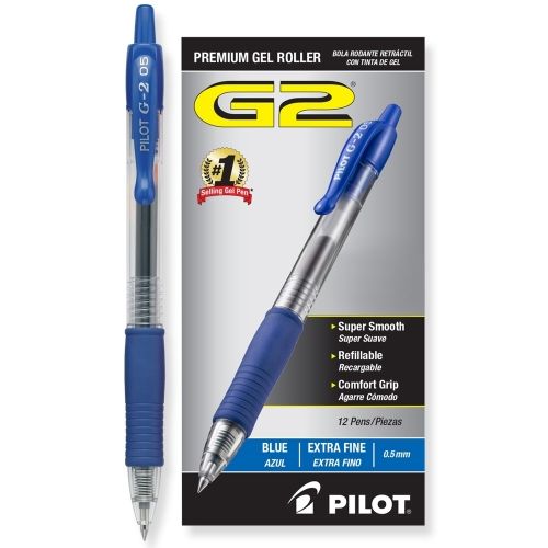 Pilot G2 Premium Refillable & Retractable Rolling Ball Gel Pens, Extra Fine Point 0.5Mm, Blue Ink, Smoke Barrel, Single Pen