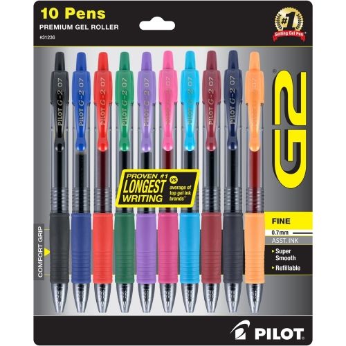 Pilot G2 Premium Refillable & Retractable Rolling Ball Gel Pens, Fine 0.7 Mm, Assorted Color Inks, 10/Pack