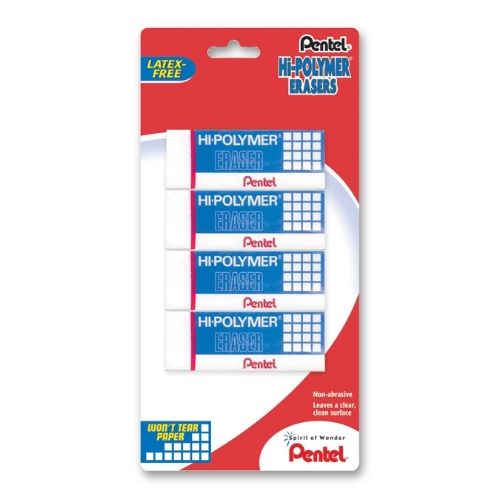 Pentel Hi-Polymer Block Eraser Large White 4/Pack