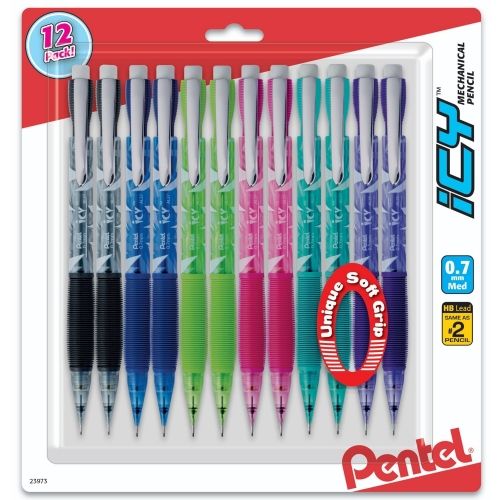 Pentel Icy Mechanical Pencil (0.7Mm) Assorted Barrels, 12/Packcil