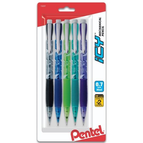 Pentel Icy Mechanical Pencil (0.7Mm) Assorted Barrels, 5/Packcil