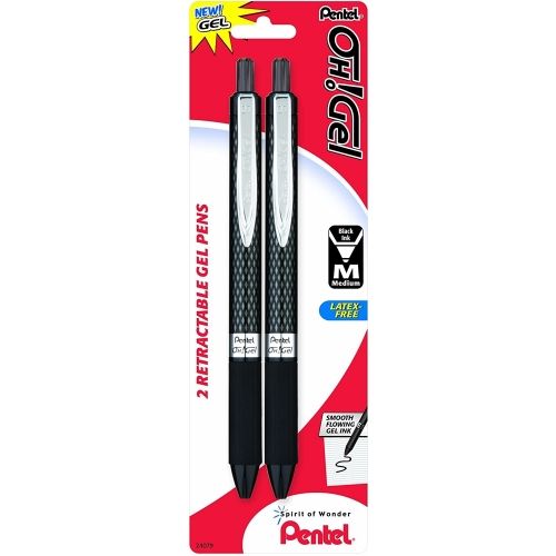 Pentel Oh! Gel Retractable Gel Pen, Medium Line, Black Ink, 2/Pack