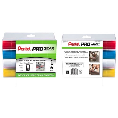 Pentel | SKU : PENW-SMW56PGPC4M1Pentel ProGear Wet Erase Chalk Marker - Assorted (B/C/W/G) Jumbo Tip - 4-pk