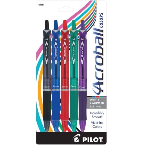 Pilot Acroball Colors Advanced Ink Ballpoint Pen, Retractable, Medium 1 Mm, Assorted Ink And Barrel Colors, 5/Pack