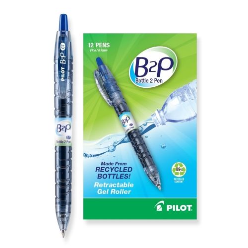 World's first pens made from recycled plastic bottles! G2 gel ink for smooth, effortless writing. Refillable. Pen Sub-Brand & SKU Line: B2P Bottle-2-Pen Recycled; Pen Style: Retractable; Pen Type: Gel Pen; Refillable (Yes/No): Yes.