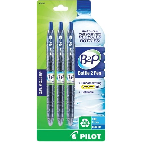World's first pens made from recycled plastic bottles! G2 gel ink for smooth, effortless writing. Refillable. Pen Sub-Brand & SKU Line: B2P Bottle-2-Pen Recycled; Pen Style: Retractable; Pen Type: Gel Pen; Refillable (Yes/No): Yes.