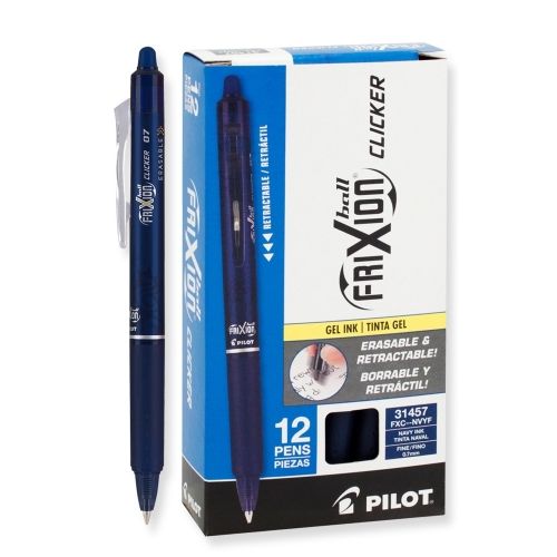 FriXion Clicker combines the convenience of a retractable with amazing erasable gel ink. Pilot® FriXion gel ink pens allow you to write, erase and rewrite without damaging documents or leaving behind messy eraser crumbs. The unique, thermo-sensitive gel ink formula offers vibrant color and smooth writing. Pen Sub-Brand & SKU Line: FriXion® Clicker Erasable; Pen Style: Retractable; Pen Type: Gel Pen; Refillable (Yes/No): Yes.