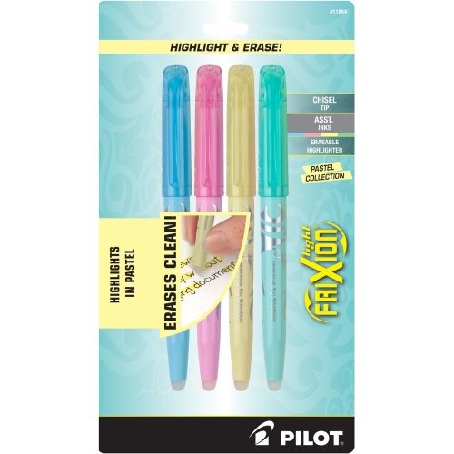 Pilot Frixion Light Pastel Collection Erasable Highlighters, Chisel Tip, Assorted Color Inks, 4/Pack, Single Sighlighter