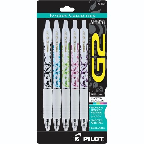 Home/Pens/Pilot G2 Fashion White Collection Premium Retractable Gel Ink Rolling Ball Pen, Fine Point, Assorted, 5/Pack