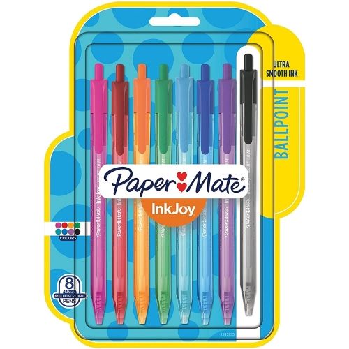 Paper Mate InkJoy 100RT Retractable Ballpoint Pens, Medium Point 1.mm, Assorted Ink, 8/Pack