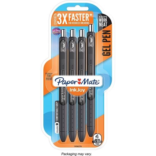 Paper Mate Inkjoy Gel Pen, Fine Point, 0.5mm, Black Ink, 4/Pack