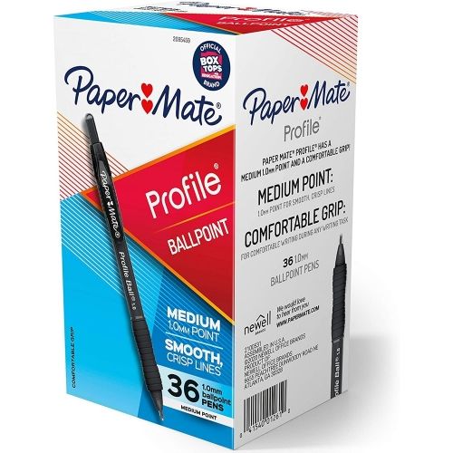 Paper Mate Profile Retractable Ballpoint Pens, Medium Point 1.0mm, Black, 36/Pack