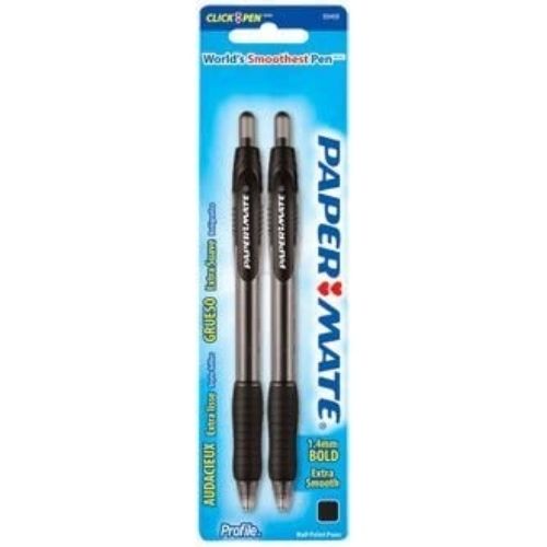 Paper Mate Profile Retractable Ballpoint Pens, Bold Point 1.4mm, Black, 2/Pack