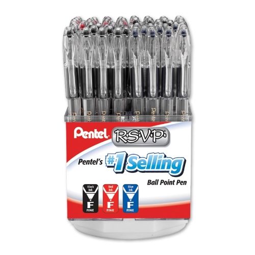 Pentel | SKU : PENW-BK90-5RSVP Ballpoint Pen, (0.7mm) Fine Line, Spinner Display - 60 Pieces