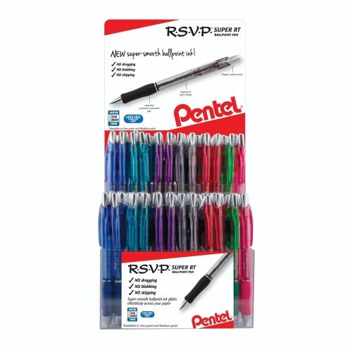 Pentel Rsvp Super Rt Ballpoint Pen, (0.7Mm) Fine And (1.0Mm) Medium Line, Assorted Colors, Open Stock Display - 120 Pieces 1 Ea