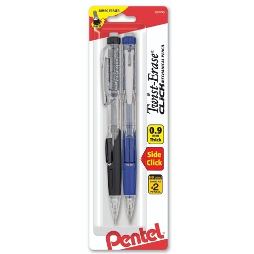 Pentel Twist-Erase Click Mechanical Pencil (0.9Mm) Clear Barrel, 2/Pack
