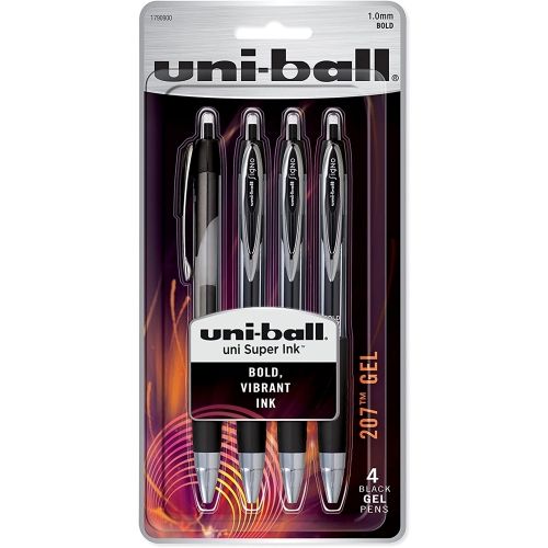Uni-Ball 207 Gel Retractable Pen, 4/Pack, 1.0Mm Bold Black