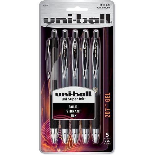 Uni-Ball 207 Gel Retractable 0.38Mm Micro Black, 5/Pack